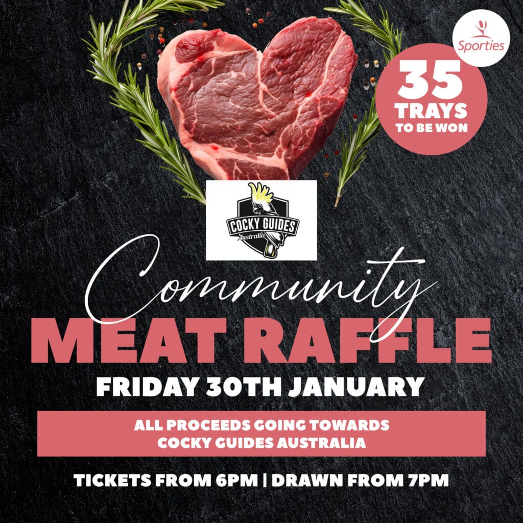 Join us at Sporties on the last Friday of every month for our Community Meat Raffle, where every ticket sold helps support a great local cause!