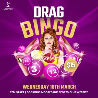 Join us for a fabulous night of fun and flair at Drag Bingo on Wednesday, 18TH of March – 7pm!