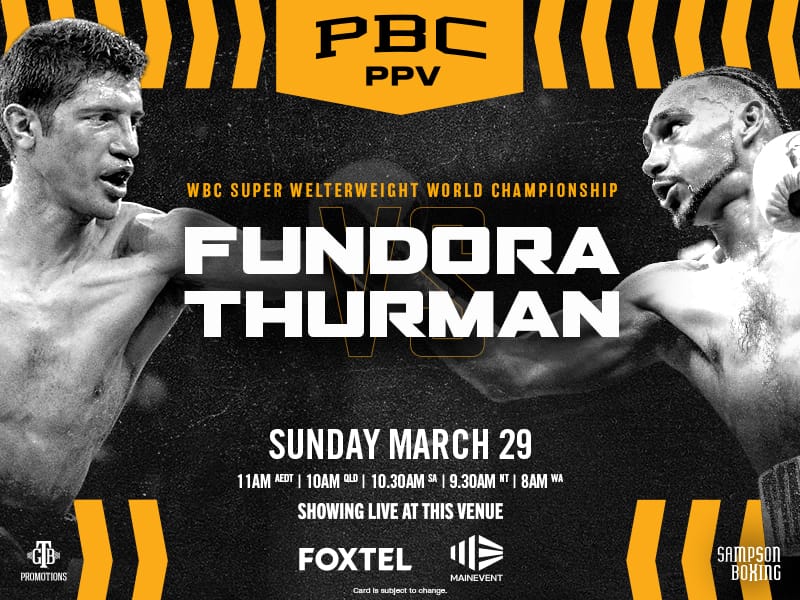 FUNDORA VS THURMAN Sunday, 29th March 2026 11:00am to 02:00pm Categorised Under: Special Events Catch all the action LIVE on our big screens this Sunday, 29th of March! We’re showing the WBC Super Welterweight World Championship, don’t miss a second of the fight night atmosphere.
